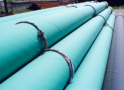 熔結(jié)環(huán)氧粉末外涂層(FBE/2FBE)是近30年來發(fā)展起來的新型防腐層,F(xiàn)BE涂層有單層和雙層兩種。所謂FBE涂層一般指單層熔結(jié) 環(huán)氧涂層。單層FBE涂層采用專用的熔結(jié)環(huán)氧粉末涂料作為成膜材料。采用靜電噴涂工藝涂敷環(huán)氧粉末涂料,一次成膜。這種環(huán)氧粉末涂料是一種熱固性涂料,由 固態(tài)環(huán)氧樹脂、固化劑及多種助劑經(jīng)混煉和粉碎加工而成。鋼管在噴漆前先經(jīng)過拋丸處理和中頻預(yù)熱,再采用靜電噴涂方法將環(huán)氧粉末涂料噴涂在加熱的鋼管表面 上,熔融粘結(jié)在鋼管表面,固化形成涂層。FBE涂層一般一般為一次成膜結(jié)構(gòu).。FBE涂層有對鋼鐵粘結(jié)力強、膜完整性好、耐陰極剝離、耐土壤應(yīng)力和耐磨 損、涂敷操作簡單、無污染、涂層抗沖擊和抗彎曲性能好、耐溫性高等優(yōu)點,在國外得到了廣泛的應(yīng)用。FBE涂層可用于工作溫度為-30~100攝氏度的鋼制 埋地管道或水下管道設(shè)施的外防腐